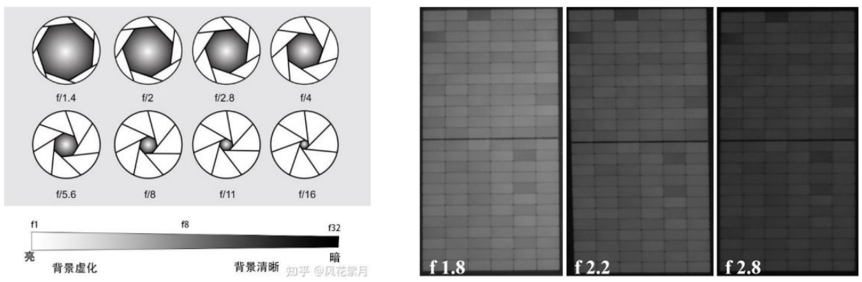 光圈是表示鏡頭中孔徑大小的一個比值,是相機鏡頭中用來控制光線進入量的裝置。其大小由f值表示,f值越小,光圈越大,進入的光線越多,EL圖像就會越亮。反之,f值越大,光圈越小,進入的光線越少,EL圖像就會越暗。光圈的大小還會影響到圖像的景深,大光圈可以得到淺景深,使得主體突出,背景虛化;小光圈則可以得到深景深,使得前景和背景都能清晰顯示。